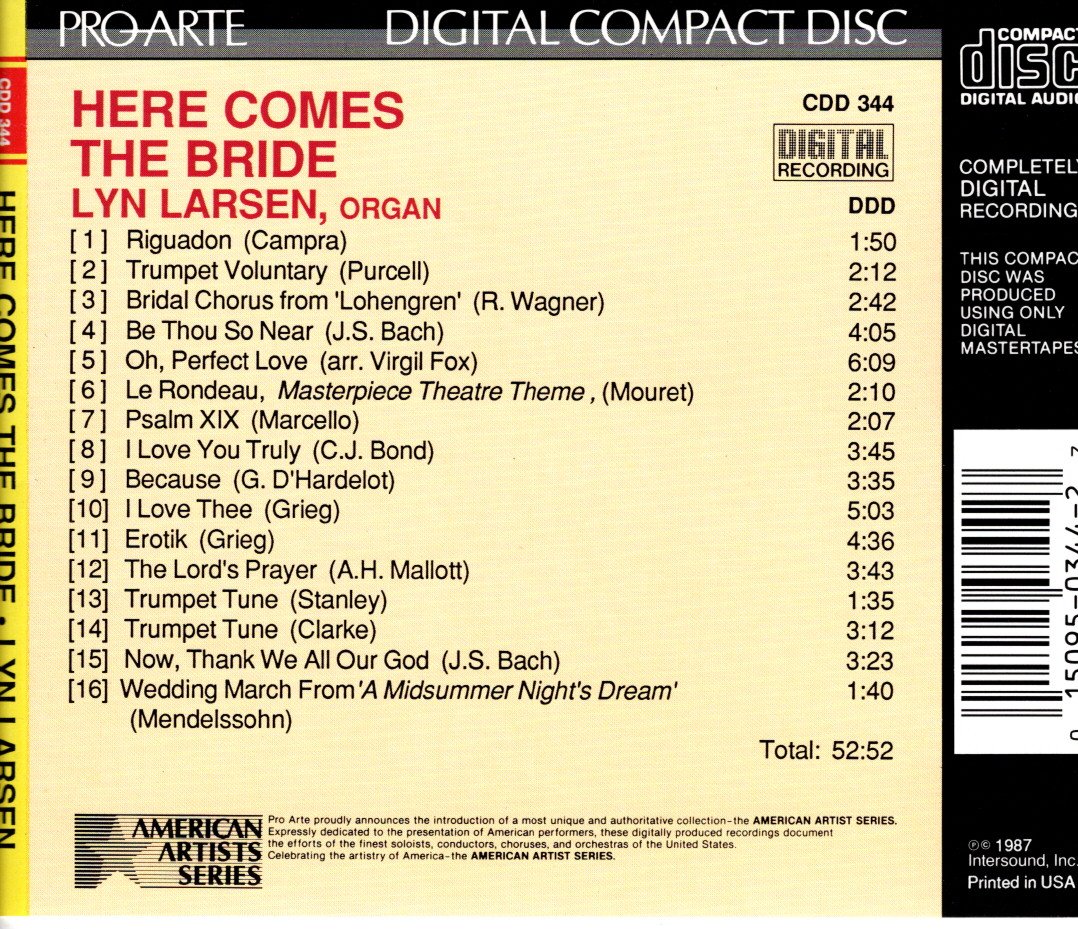 Home / All Second Hand items / Second Hand CDs / Here comes the Bride – Lyn Larsen Here comes the Bride – Lyn Larsen£3.00 In stock Here comes the Bride - Lyn Larsen quantity Add to basket SKU: CDD344 Categories: All Second Hand items, Second Hand CDs Additional information Additional information Weight 0.1 kg Dimensions 15 × 13 × 1 cm Related products Wurlitzer Fanfare £6.00 Add to basket The Magical Sound of the Wurlitzer Organ £3.00 Add to basket Music Maestro Please – Reginald Dixon £3.00 Add to basket Hot Pipes – Sydney Torch £6.00 Add to basket